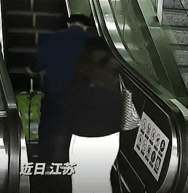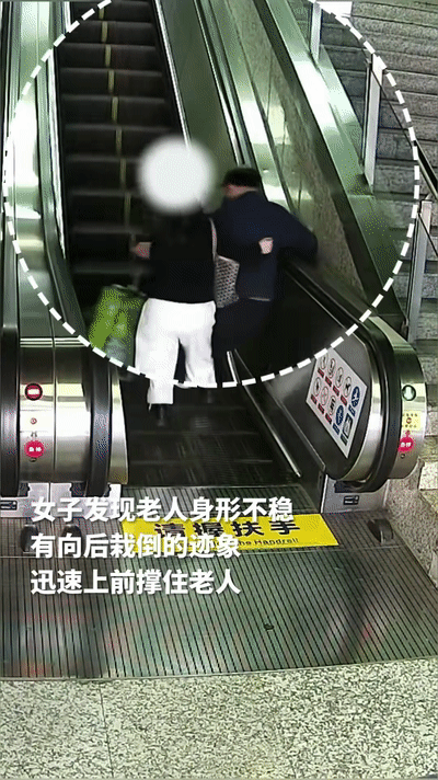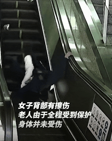 和老人一起摔在了扶梯上