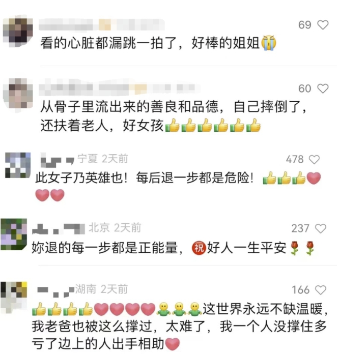 一位女子发现老人身形不稳