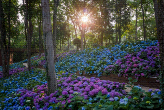 近日,中山植物园的绣球花海