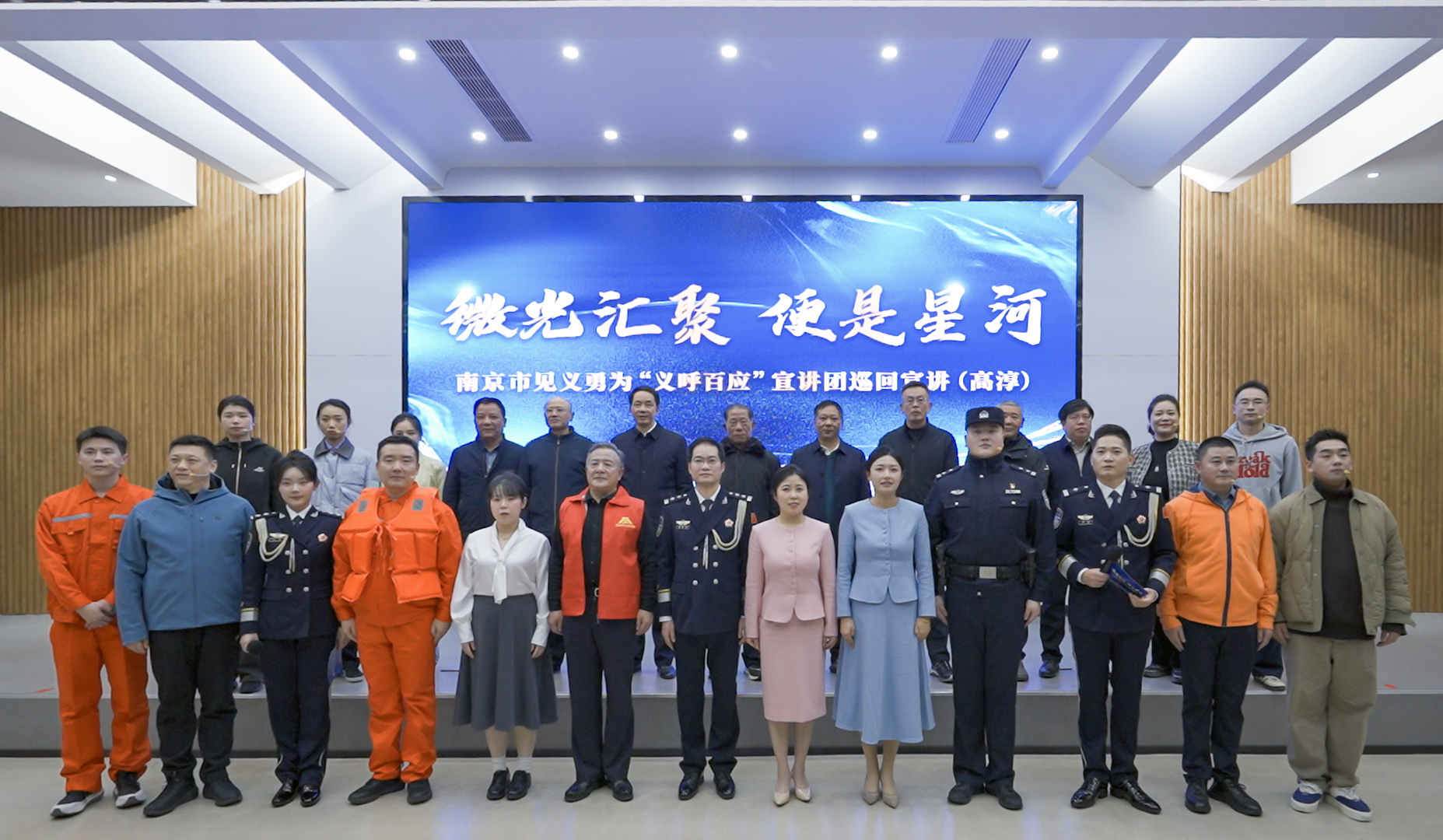12月23日下午,南京市见义勇为“义呼百应”宣讲团走进江苏省高淳中等专业学校。现场,师生们共同观看了见义勇为事迹宣讲演出,活动为2名南京市见义勇为积极分子和3名高淳区见义勇为人员颁发了荣誉证书。