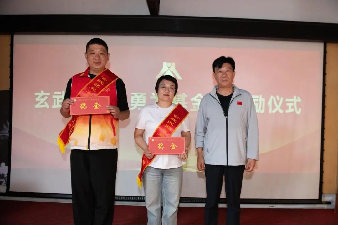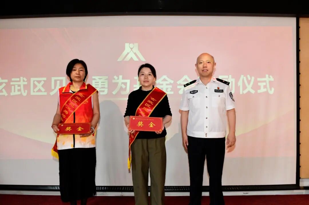 玄武区公安分局党委副书记、政委芮庆华为救助路倒老人的东南大学社区工作人员金花、孙妍颁发奖金,肯定其善行义举,鼓励其带动更多身边人积极参与见义勇为、见义善为、见义智为。