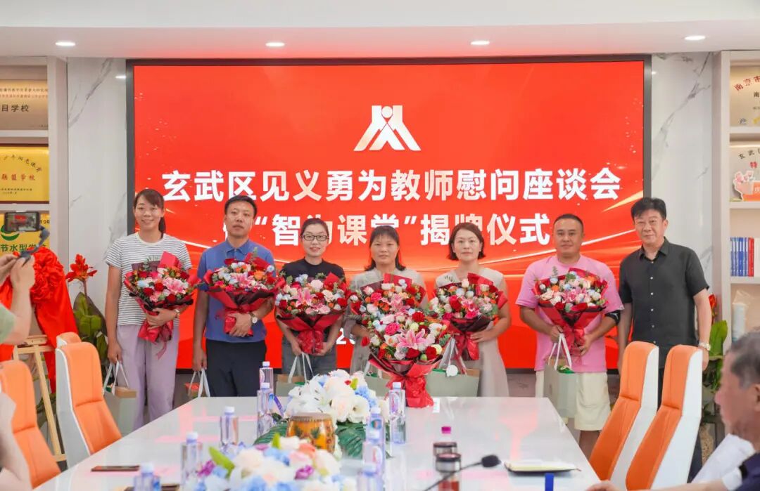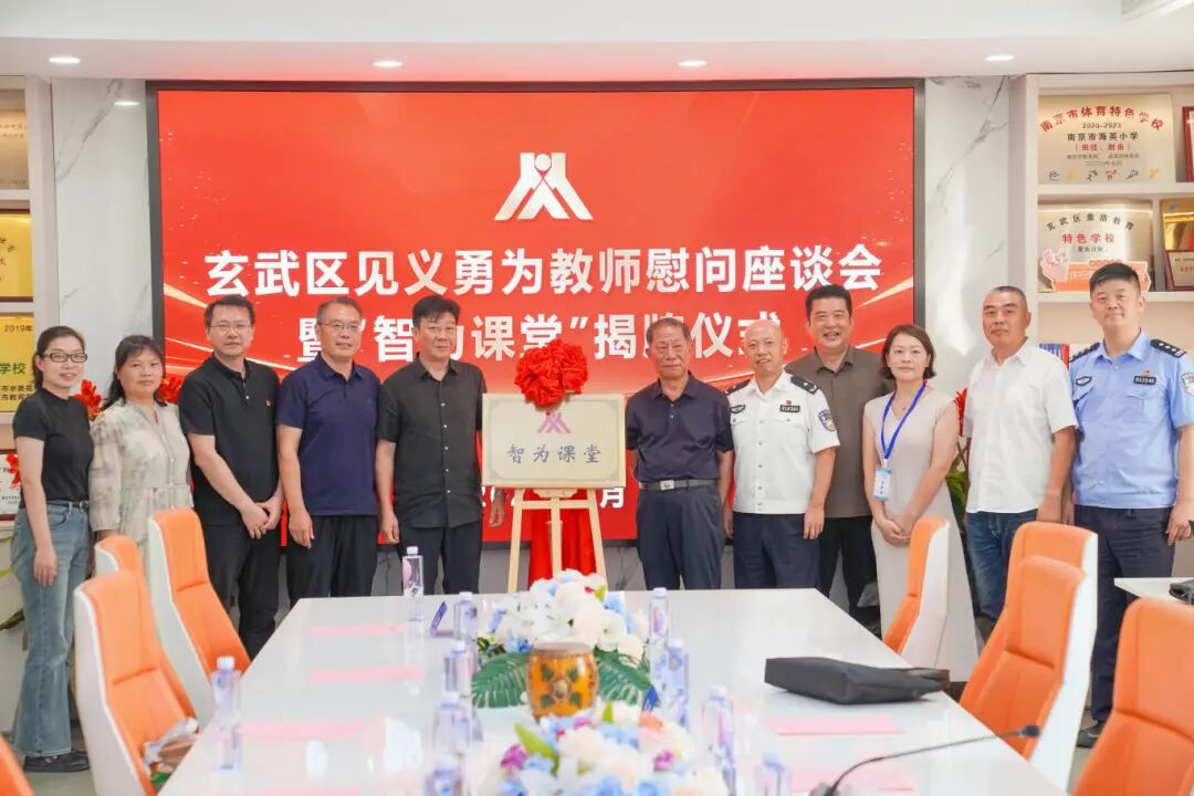 为庆祝第41个教师节,9月5日上午,玄武区见义勇为基金会举办见义勇为教师慰问座谈会暨“智为课堂”揭牌仪式。南京市见义勇为基金会副理事长司军,玄武区见义勇为基金会理事长蒋健,区公安分局党委副书记、政委芮庆华,区教育局副局长周波,以及见义勇为教师代表等参加活动。