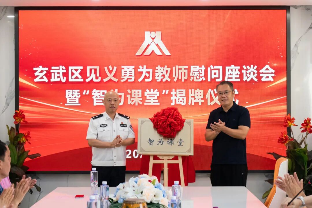 随后,“智为课堂”正式揭牌。该课堂由玄武区见义勇为基金会与区教育局联合创设,是全市首个以“见义智为”为主题的系统课程,旨在面向全区中小学生传播“自我保护、科学助人、智慧应对”的理念,提升青少年风险认知和应急处理能力。