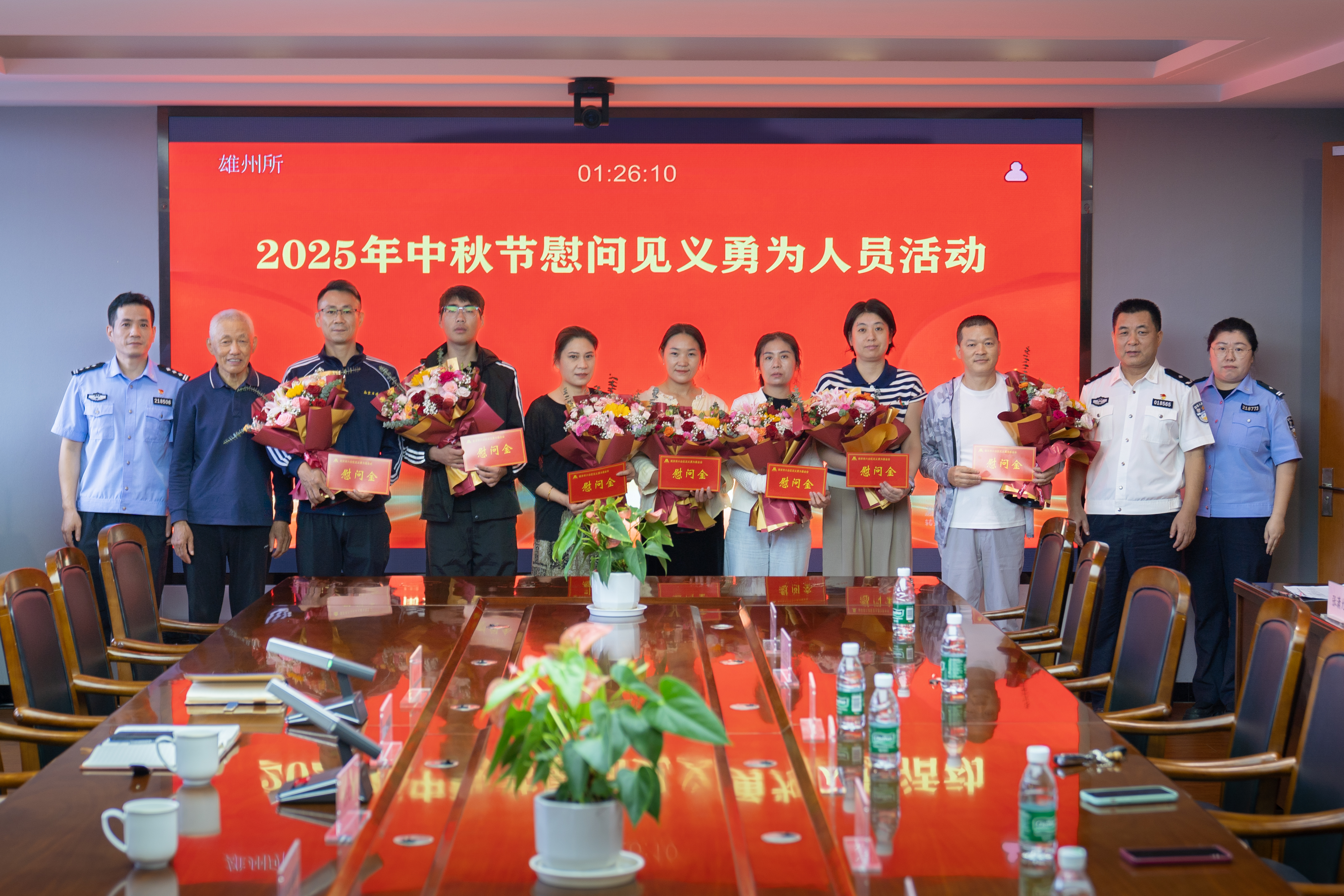 9月25日上午,区见义勇为基金会到雄州工作站开展中秋慰问活动。区见义勇为基金会理事长金汉槽,分局党委副书记、政委毛家诚,雄州工作站站长及7名见义勇为代表参加。