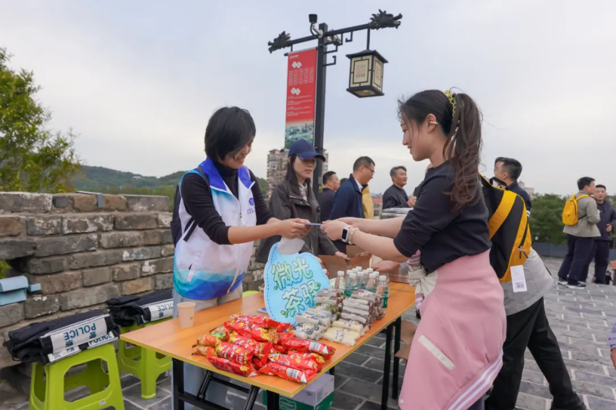 行至太平门,“微光茶驿”静候君至。热饮暖手,茶点暖心,更有专属活动纪念文创传递敬意与谢意。这一刻,温暖相伴,情谊凝聚。