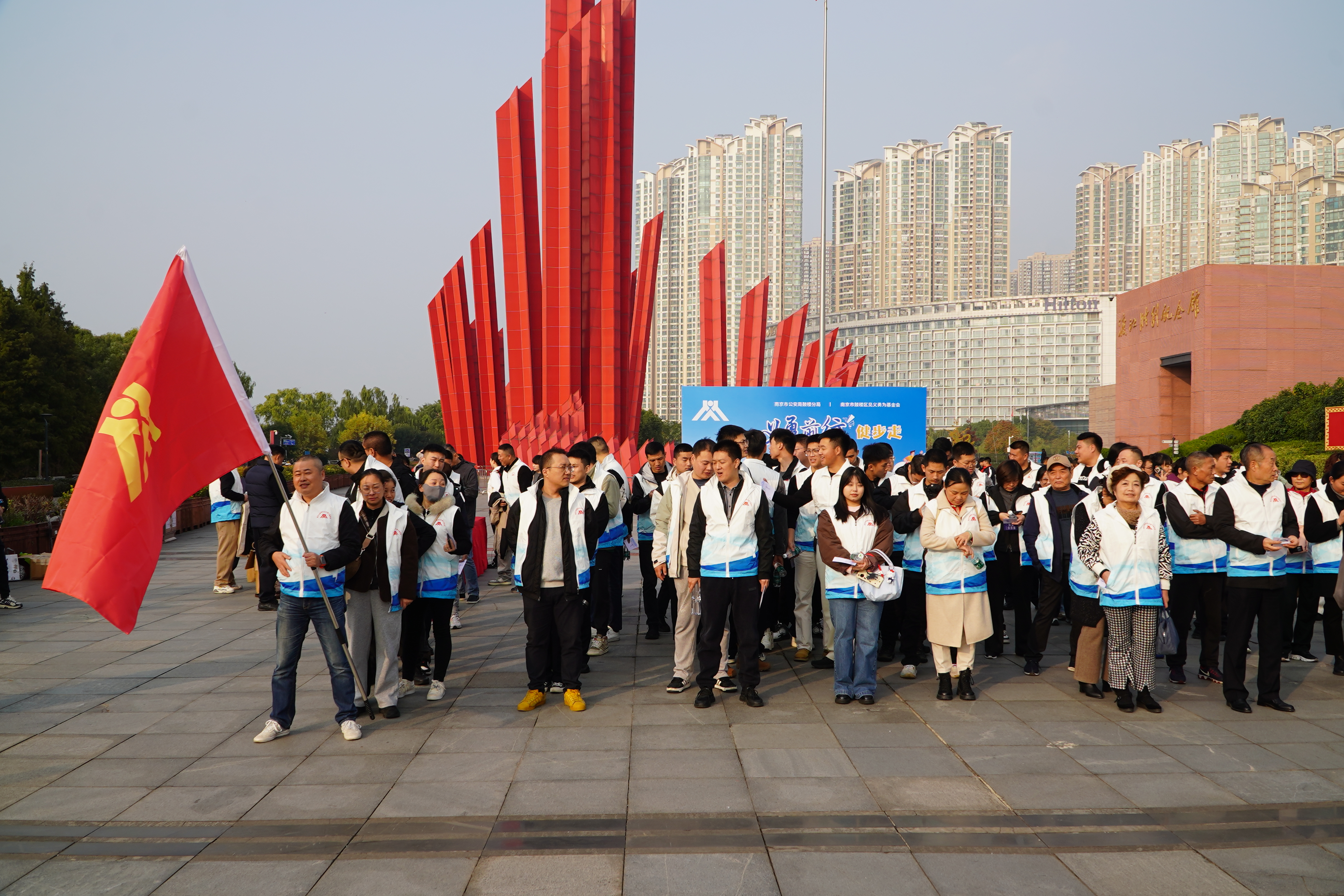 为庆祝第十七个南京市见义勇为宣传日,宣传见义勇为精神,激发社会正气、弘扬社会正能量,展现全区见义勇为建设成果,鼓励更多市民投身见义勇为事业,鼓楼区见义勇为基金会于11月22日下午在渡江胜利纪念馆开展见义勇为奖励大会暨“幸福鼓楼 义勇前行”健步走系列活动。鼓楼公安分局党委副书记、政委李少勋,鼓楼区见义勇为基金会理事长陶顺生,鼓楼公安分局党员委员、政治处主任陈晓峰,鼓楼区见义勇为基金会副理事长兼秘书长杨奎出席活动,各见义勇为工作站负责人、84名受到表彰的见义勇为人员参加活动。