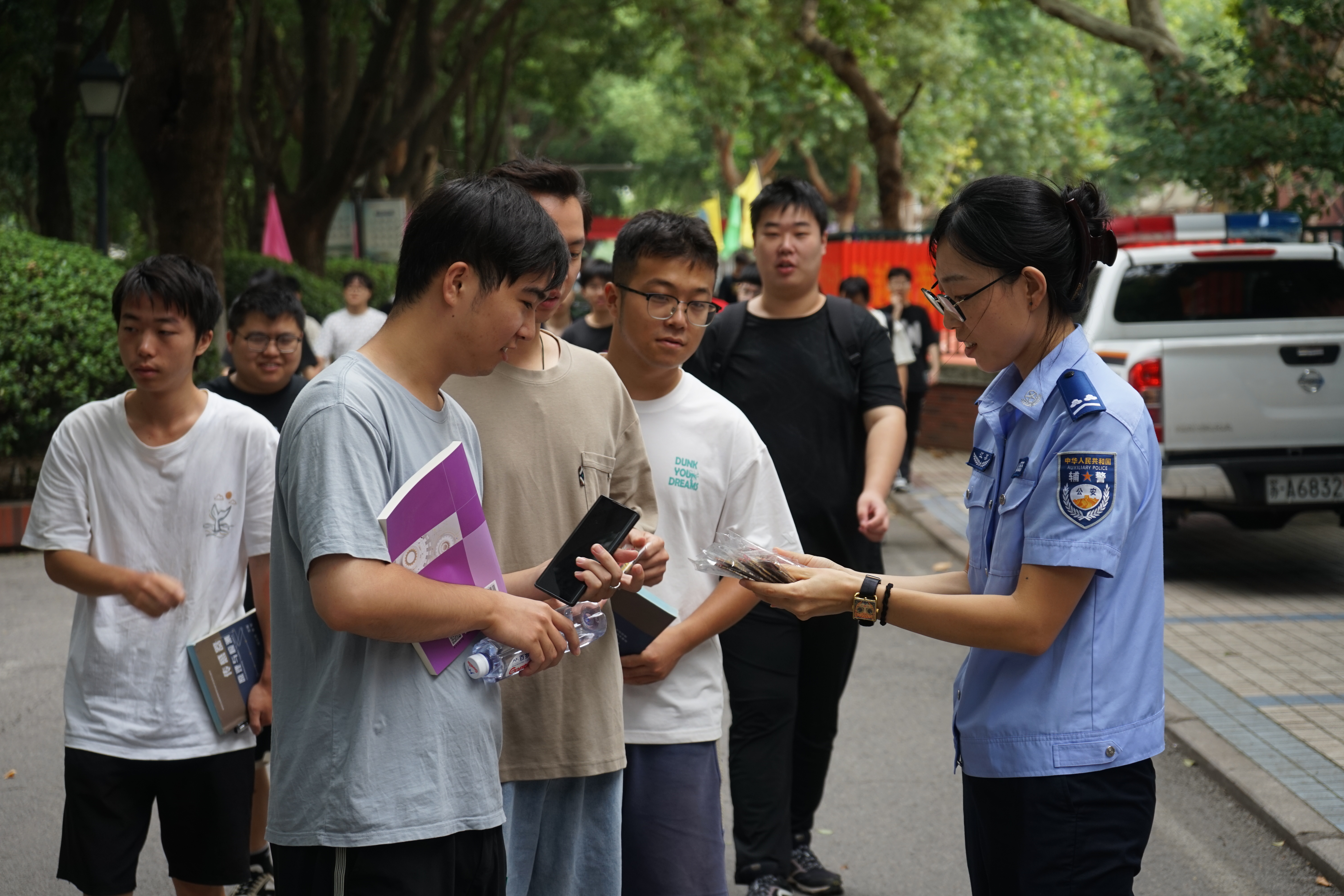 在学生下课必经之路,一批精心设计的“开学礼”成为焦点。带有“见义勇为”标识的签字笔、文件袋、鼠标垫、钥匙扣等实用文创产品,凭借其美观设计与实用功能,深受学生欢迎。这些小物件无声融入同学们的日常学习生活,让见义勇为的精神以“润物细无声”的方式浸润校园。