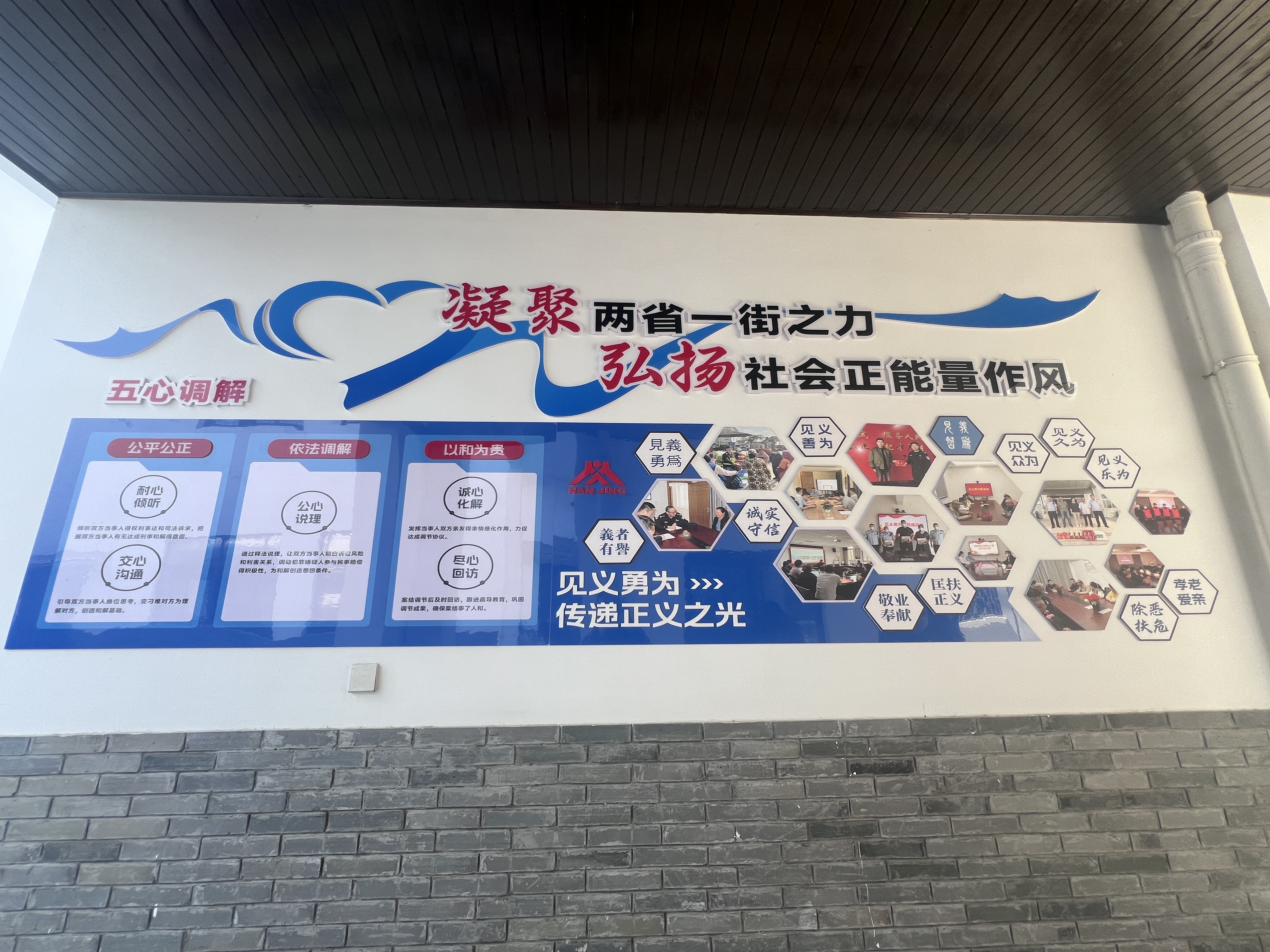 2025年11月19日,江宁区见义勇为基金会紧扣丹阳派出所“两省一街见义勇为工作室”特点,融合“两省一街警务室”有效推进苏皖两省交界的区域警务协作效能和“两省一街”政务服务窗口,以设置见义勇为宣传展牌,窗口服务宣传等方式建成新的两省一街”见义勇为宣传阵地见义勇为宣传阵地,大力提升了苏皖两省交界区域的见义勇为宣传影响力。