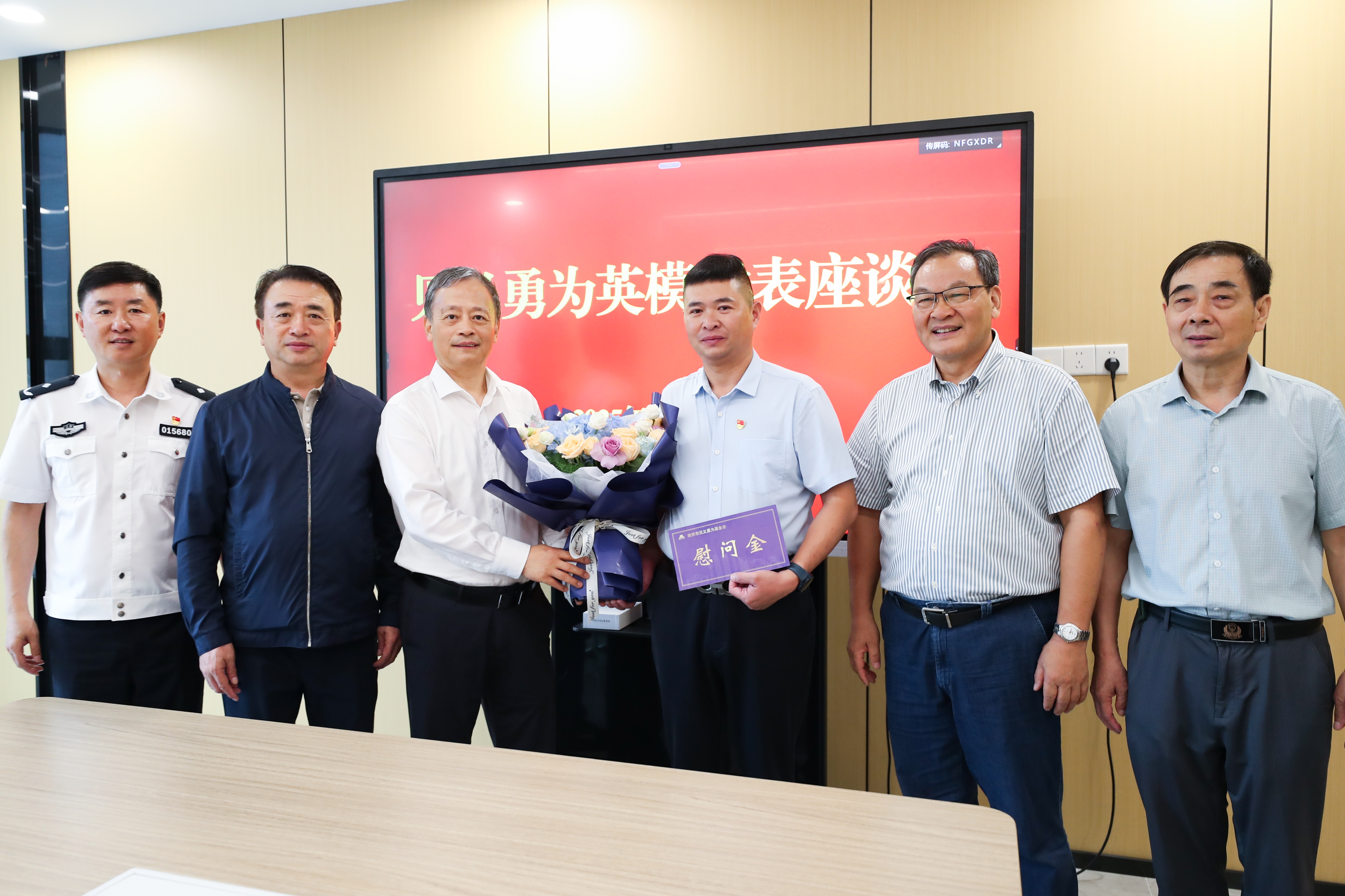 在中秋佳节即将来临之际,9月26日上午,南京市委常委、政法委书记徐锦辉赴江北新区看望慰问“全国见义勇为好司机”杨学涛,致以节日问候和祝福。市见义勇为基金会副理事长周宁,市、区见义勇为基金会及江北新区公安分局相关负责同志参加。