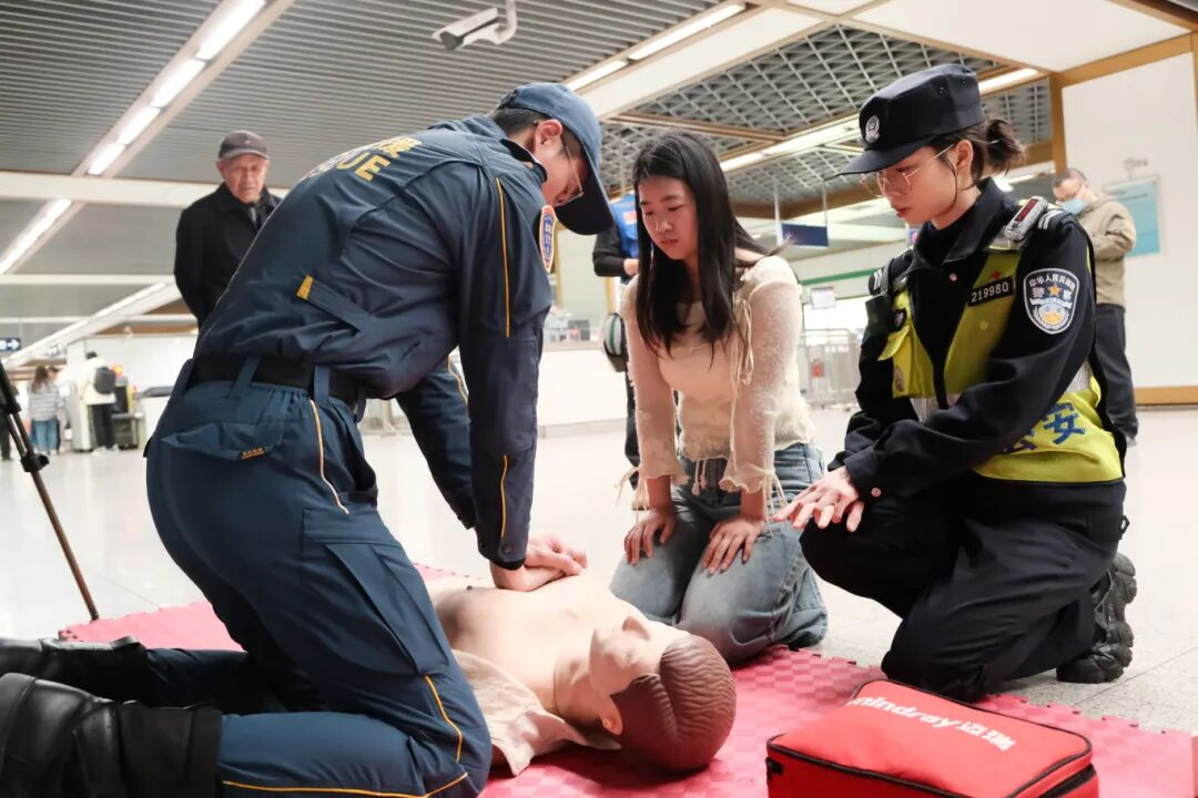 在专业培训环节,南京蓝天救援队针对地铁站内常见的突发状况,采用"讲解+示范+实操"的模式,重点讲解了AED除颤仪使用规范、心肺复苏操作要领以及海姆立克急救法等实用技能。