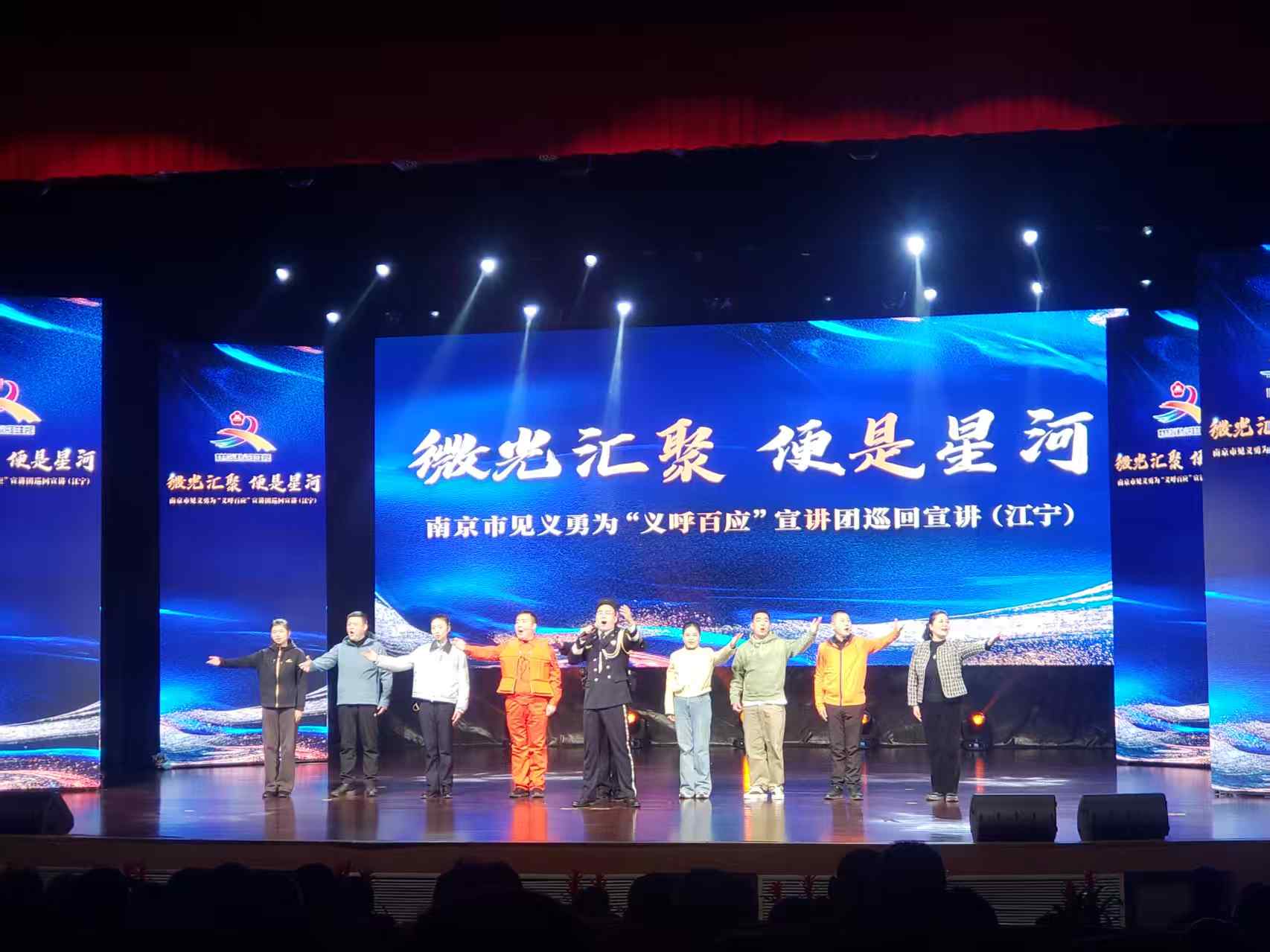 1月13日下午,南京市江宁区市民中心剧场内暖流涌动、掌声雷动,南京市见义勇为"义呼百应"宣讲团巡回宣讲活动在此隆重举行。市、区见义勇为基金会相关领导,公安分局分管领导,各见义勇为工作站代表、民辅警及群众代表近400人齐聚一堂,共同聆听凡人壮举,感受正义力量。
