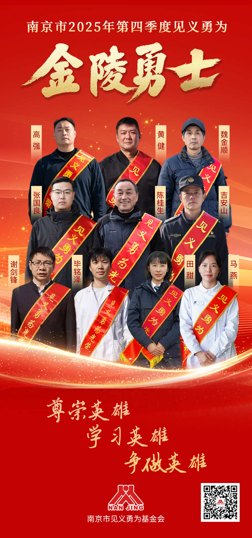 1月21日,南京市见义勇为基金会正式发布2025年第四季度见义勇为“金陵勇士”,10位见义勇为人员光荣上榜。他们以平凡之躯行英雄之举,生动诠释了南京城的博爱精神与向上向善的社会风尚。